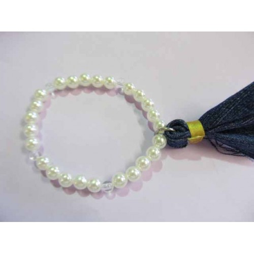 Acrylic pearls with material tassle on elastic